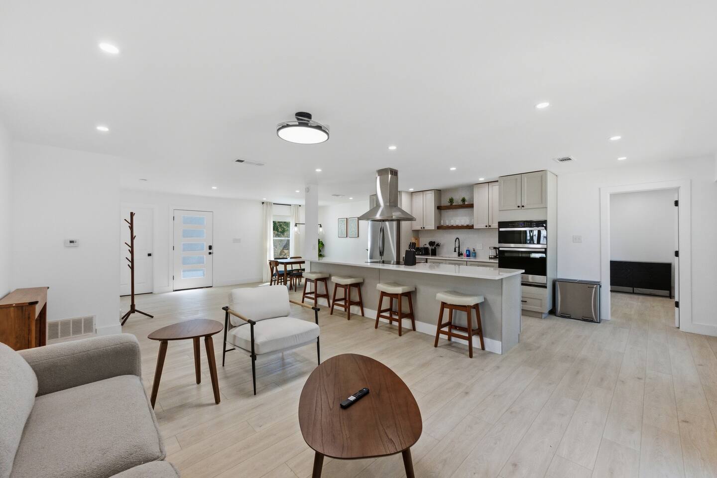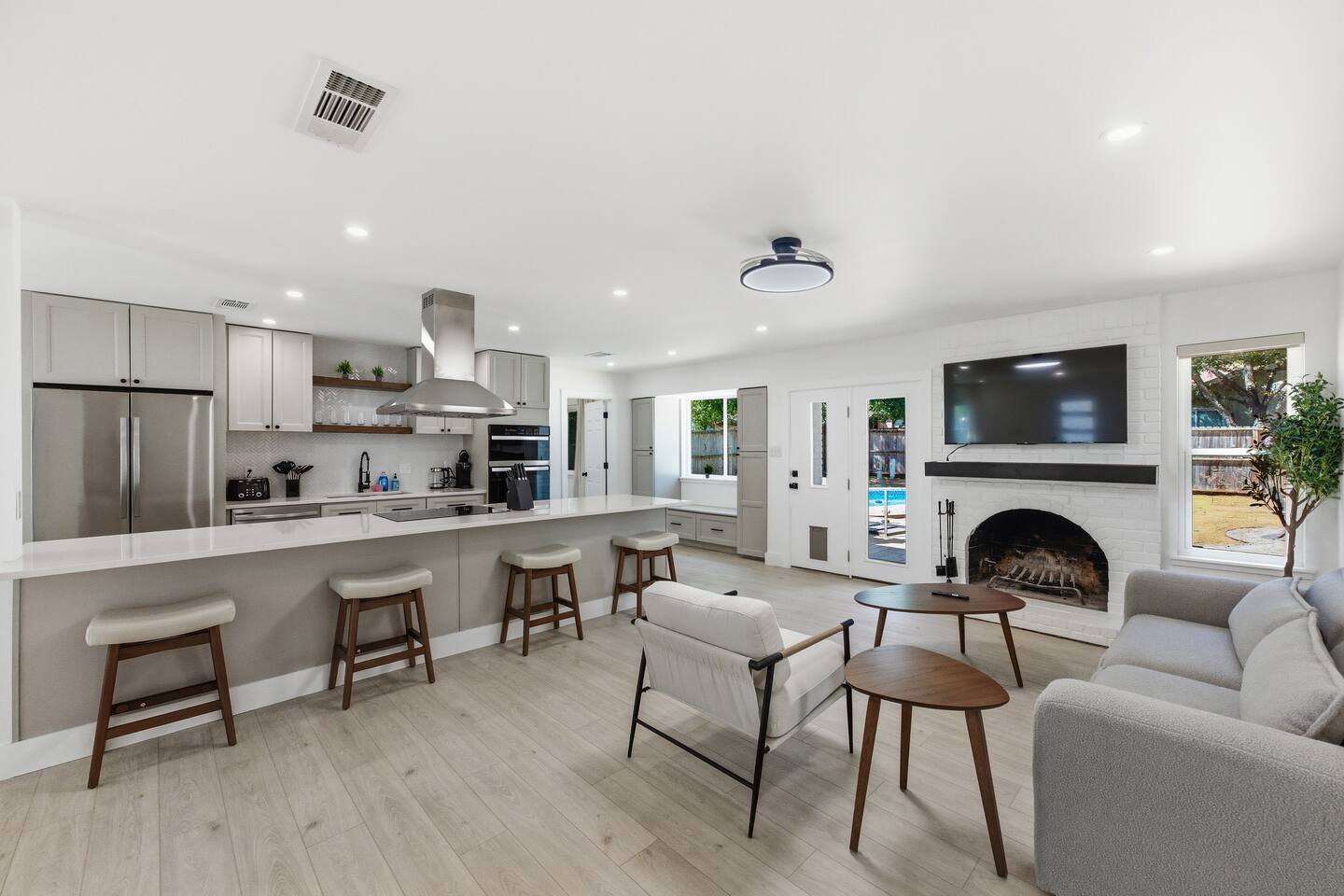 🏡 Lounge in luxury—your Austin escape awaits. This newly refurbished 3BR retreat was designed for relaxation, connection, and fun. Spend your days basking in the Texas sun beside your private pool, gather for alfresco dinners under twinkle lights, or unwind with cocktails at night in the backyard. Inside, enjoy a bright open living area, a fully stocked kitchen ready for home-cooked meals, and cozy bedrooms designed for comfort. With 3 bedrooms and 4 beds, the home is perfect for families, groups, or friends traveling together. Whether you’re here for a bachelorette weekend, festival trip, or family getaway, this house was made for memory-making. Just minutes from South Congress, Rainey Street, and Austin’s legendary live music and nightlife—this isn’t just a stay, it’s your private poolside retreat in the heart of the city. 🛏 Room Accommodations • Bedroom 1: Queen bed. • Bedroom 2: Queen bed. • Bedroom 3: Queen bed. • Living Room: Queen sofa bed for flexible sleeping arrangements. Each bedroom is newly refurbished with blackout curtains, nightstands with reading lamps, and plenty of storage. Bathrooms are stocked with shampoo, conditioner, body wash, and fresh towels for your stay. 🏠 Additional Indoor Spaces • Living Room: Relax on a comfy sofa and stream your favorites on a 50" Smart TV. • Dining Area: Table seating for 6, perfect for shared meals or game nights. • Kitchen: Fully stocked with modern appliances, cookware, and dinnerware—plus a coffee maker for your morning brew. • Laundry: Washer/dryer with complimentary detergent for convenience. 🌴 Outdoor Amenities • Backyard: The highlight of your stay! Enjoy your private pool surrounded by a fully fenced yard for ultimate privacy. • Al Fresco Dining: Outdoor dining table and seating, perfect for BBQs and evening gatherings. Fire up the grill and enjoy a classic Austin cookout. • Lounging: Seating areas designed for soaking up the sun or enjoying cocktails under the stars. Gather around the outdoor fire pit to wind down the night in style. • Pool: Gather, unwind, and let the good times flow. The pool area is ideal for laughter-filled afternoons with friends and family, refreshing swims, and relaxed evenings that turn into unforgettable memories. • Games: Cornhole, and pool floats to keep the fun going. 🏙 Neighborhood Nestled in a peaceful, tree-lined neighborhood of South Austin, this retreat offers the perfect blend of quiet relaxation and city access. Enjoy calm mornings by the pool, then head out to explore Austin’s vibrant food, live music, and nightlife scenes just minutes away. South Congress, Rainey Street, and downtown are all nearby, while the airport is a quick drive—making arrival and departure a breeze. ✨ This is more than just a stay—it’s a brand-new poolside retreat designed for relaxation, connection, and unforgettable Austin memories.