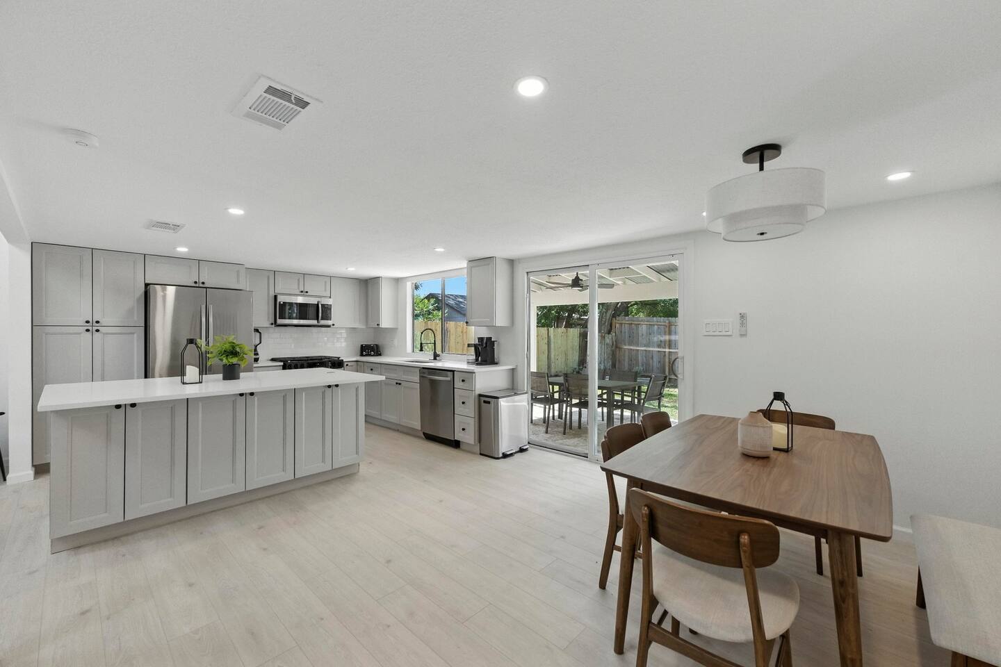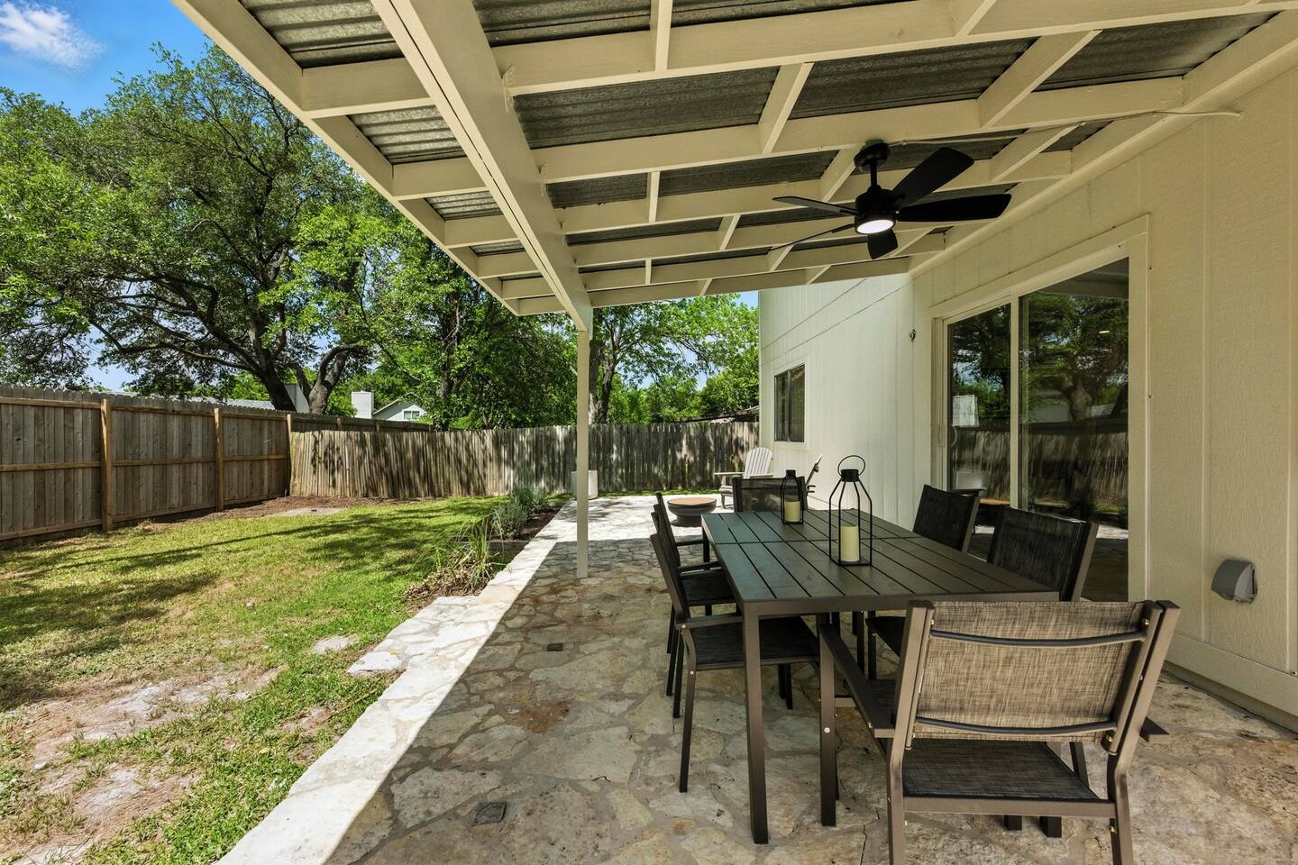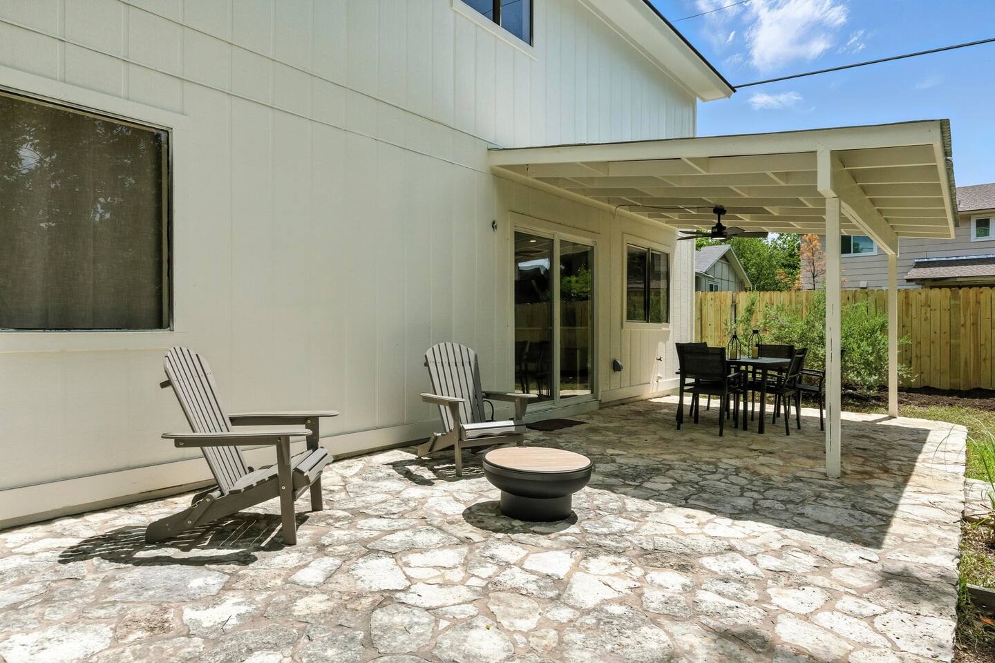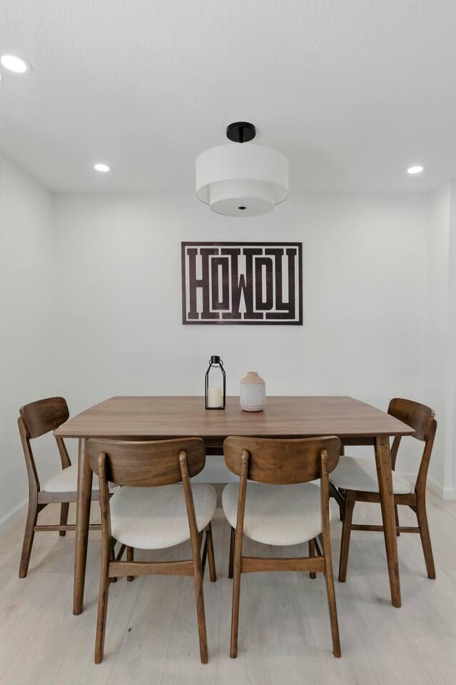 🏡 The Space This bright and modern 3BR home is the perfect balance of comfort and convenience. With an open layout and stylish décor, it’s designed for families, groups, or business travelers who want to relax and recharge while staying connected to everything Austin has to offer. Room Accommodations: Bedroom 1: Queen bed, closet Bedroom 2: Queen bed, closet Bedroom 3: Two twin beds, closet Living Room: Cozy sofa + Smart TV for streaming nights Bathroom: Updated with shower/tub combo, stocked with essentials Kitchen & Dining: Fully equipped with modern appliances, cookware, dinnerware, and a coffee maker Dining table for shared meals or workspace flexibility Laundry: Washer & dryer available, with complimentary detergent and dryer sheets Backyard: Private, fenced outdoor space perfect for morning coffee, family hangouts, or evening wine Seating area for lounging under the Texas sky 🌆 Neighborhood Vibes Located in a quiet South Austin neighborhood, this home offers the best of both worlds: peaceful surroundings with quick access to the city. Explore local dining, shopping, and coffee spots nearby, or head just 10–15 minutes into downtown for live music, nightlife, and cultural attractions. With easy access to I-35, you’ll be well connected to SXSW, Circuit of the Americas, and Austin City Limits.